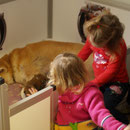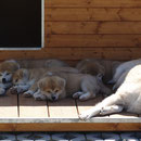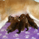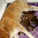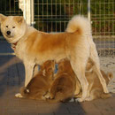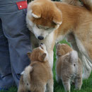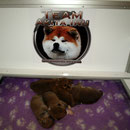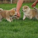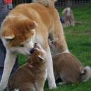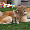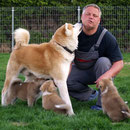Unsere Akita Welpen werden bei uns im Haus geboren. Sie haben mit ihrer Mutter ein eigenes Welpenzimmer, damit sie in den ersten 3 Lebenswochen in Ruhe aufwachsen können. Sobald die Welpen beginnen zu laufen und neugierig werden, ziehen sie mit ihrer Mutter zu uns ins Wohnzimmer um. Dort haben sie Kontakt zu unseren anderen Hunden und lernen die alltäglichen Dinge des Lebens kennen. Natürlich haben sie auch direkten Zugang zu unserem Garten !